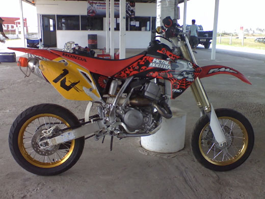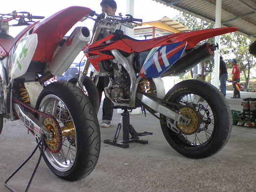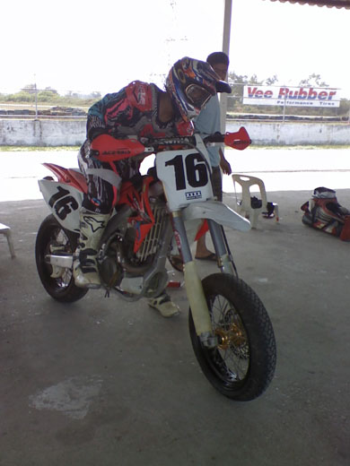 คุณลูก..มานพ อับดุลการี..แชมป์ enduro light weight... crf450...ขอลองใน feel motard ดูมั่ง.. |