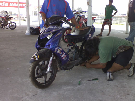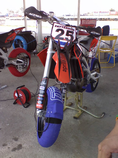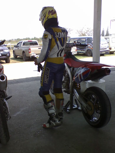 รถใหม่..ที่วอร์มยางใหม่..ขาตั้งใหม่..รถขนมาก็ใหม่..แต่คนขี่ เก่า... |