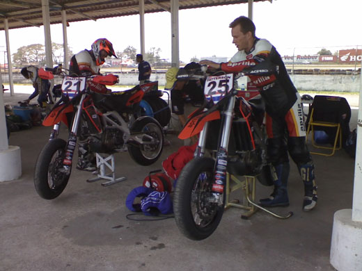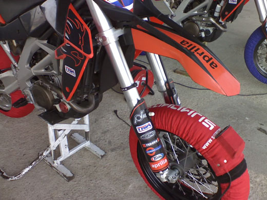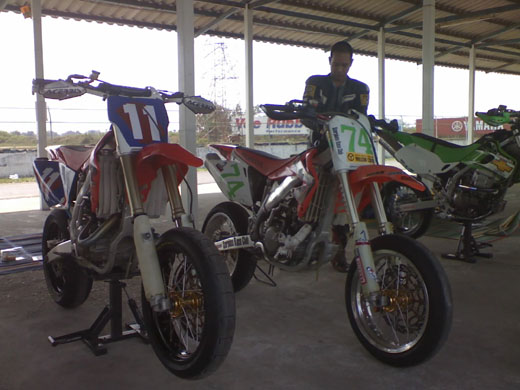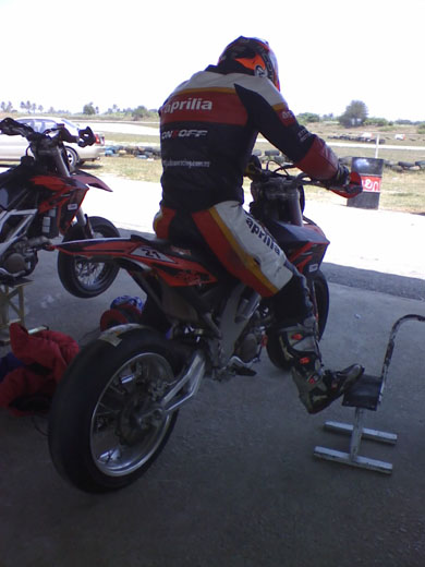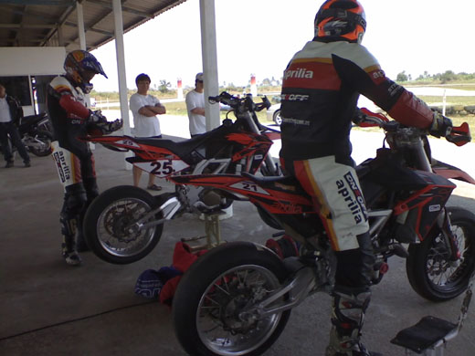 มาแล้ว ทีม aprilia thailand กับ aprilia sxv450...ใหม่แกะกล่อง คุณเมท กับ คุณเชน..แข่งมาแล้วเกือบทุกอย่างที่มี 2 ล้อ..เหนียวแน่นจริงๆ ..ซึ่งตาม กติกาแล้ว คุณเมท,กับคุณเชน สามารถลงในรุ่น pro b ได้.. แต่เขาบอกไม่เอา ผมจะลง pro a เท่านั้น..
