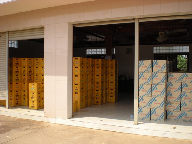 ที่ลาว เค้านิยมกินเบียร์กันครับ เค้าว่าเบียร์อร่อยมากๆ แต่ผมกินไม่เป็น แต่เห็นโกดังเบียร์ในปั๊ม นิยมกันจริงๆครับ |