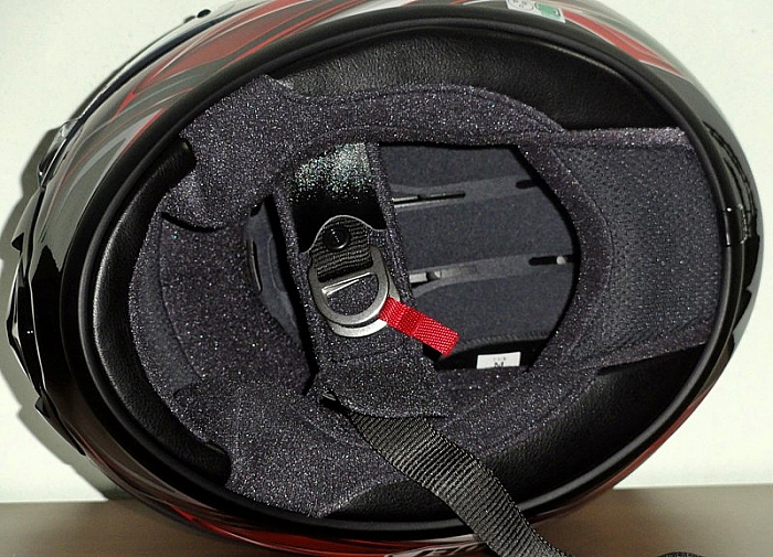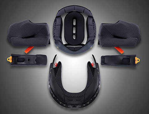 CHEEK PADS มีระบบ FCS (Facial Contour System) เมื่อเวลาสวมใส่ ฟองน้ำตรงแก้มจะดันให้แนบแน่นกับแก้ม แบบถึงลูกถึงคนแทรกซึมไปถึงรูขุมขนของใบหน้ากันเลย แต่จากการสวมใส่ดูแล้ว ก็ธรรมดาๆ ไม่ได้มีอะไรพิเศษหรือแตกต่างจากรุ่น RX-7 RR5 แถมยังพ่วงลูกเล่น EMERGENCY RELEASE SYSTEM |