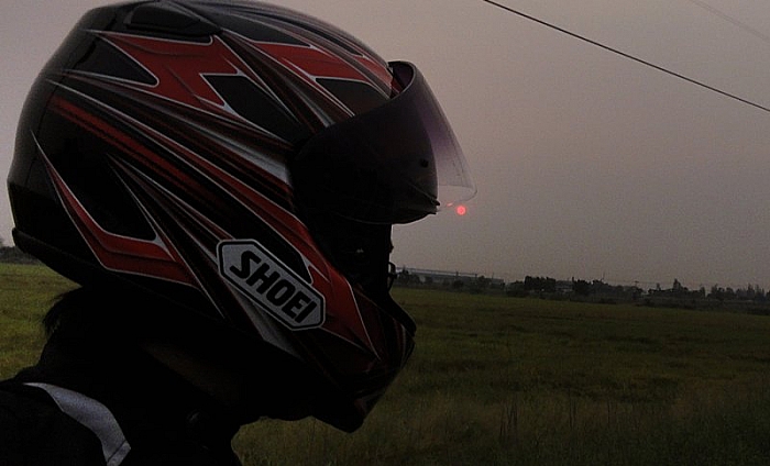ชิลด์หมวก HALF-TONE ก็ใช้งานได้ดี ชอบมากๆเลยละ เวลานั่งขี่ปรกติ ระดับสายตาจะไปอยู่ตรงช่วงชิลด์ใสๆ ส่วนเวลาก้มหรือหมอบขี่ จะไปอยู่บริเวณสีทึบ เวลาใส่ขี่กลางวันจะสบายตาดี