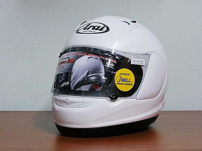 ARAI ASTRO-IQ ค่าตัว 12,000 บาท ตัวนี้เป็นผู้มาแทนรุ่น PROFILE วัสดุที่ใช้ทำเปลือกหมวก ยังคงใช้ PB-CLC (Peripherally Belted Complex Laminate) มารตฐานหมวก SNELL M2010